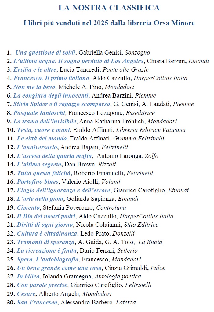 classifica | commento | 12 dicembre 2025 Gruppo di lettura Orsa Minore.