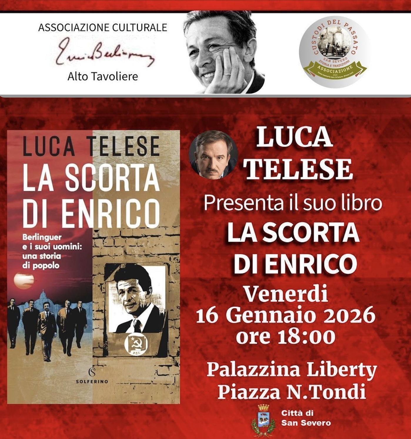 16 gennaio 2026 Associazione culturale Enrico Berlinguer. Luca Telese presenta La scorta di Enrico (Solferino). Palazzina Liberty, piazza Nicola Tondi. Ore 18 locandina | 3 gennaio 2026 La nostra classifica